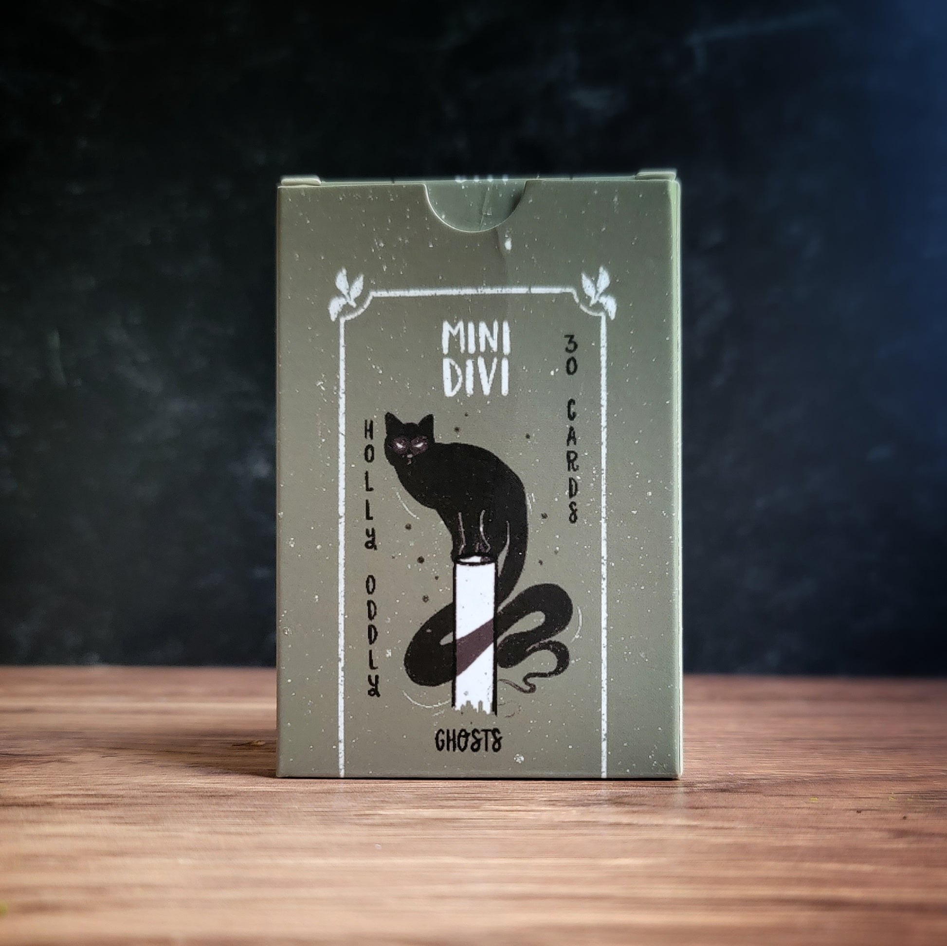 The Mini Divi cards are 58x88mm cards on 300gsm that are perfect for taking with you. It is great for using with other Mini Divi decks in one giant mega Mini Divi or with the Teeny Tiny Tarot. It is a 30-card deck with a purple, black, and white color palette. The interpretations are directly on the cards, so there is no need for a guide.