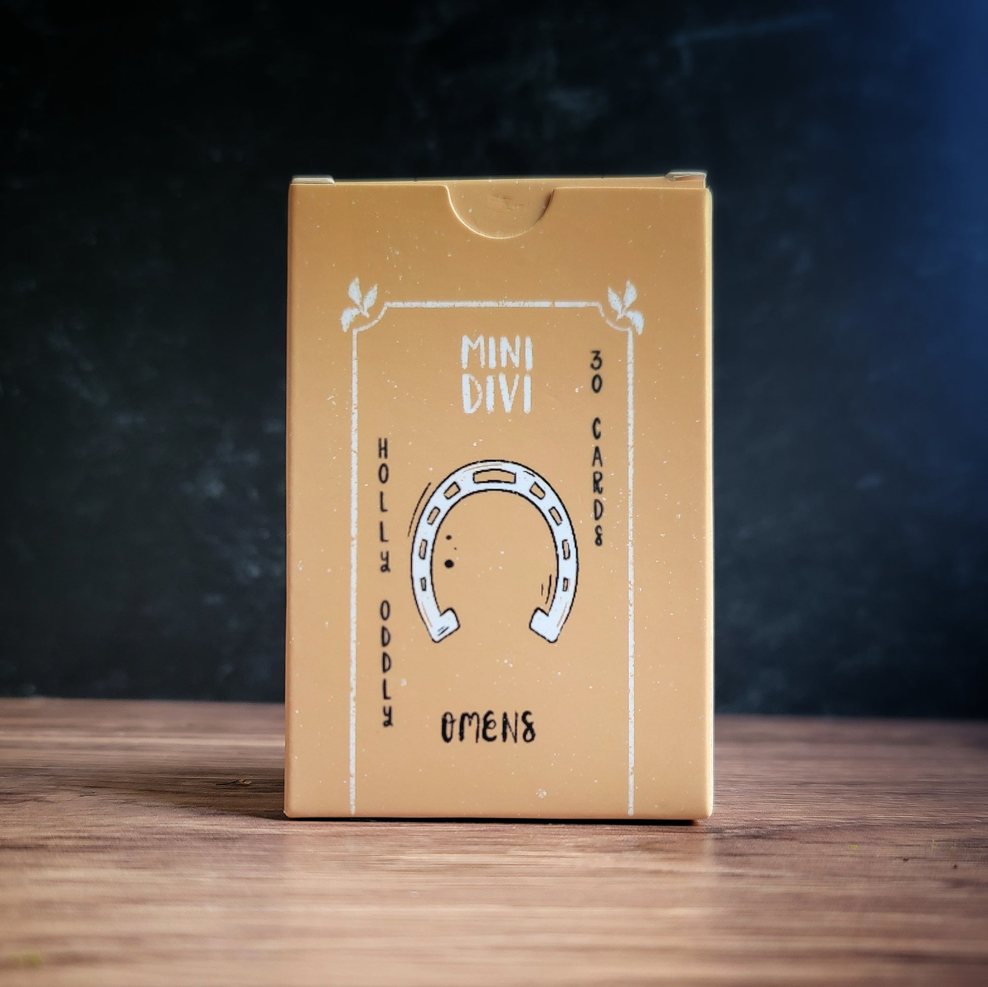 The Mini Divi cards are 58x88mm cards on 300gsm that are perfect for taking with you. It is great for using with other Mini Divi decks in one giant mega Mini Divi or with the Teeny Tiny Tarot. It is a 30-card deck with a purple, black, and white color palette. The interpretations are directly on the cards, so there is no need for a guide.