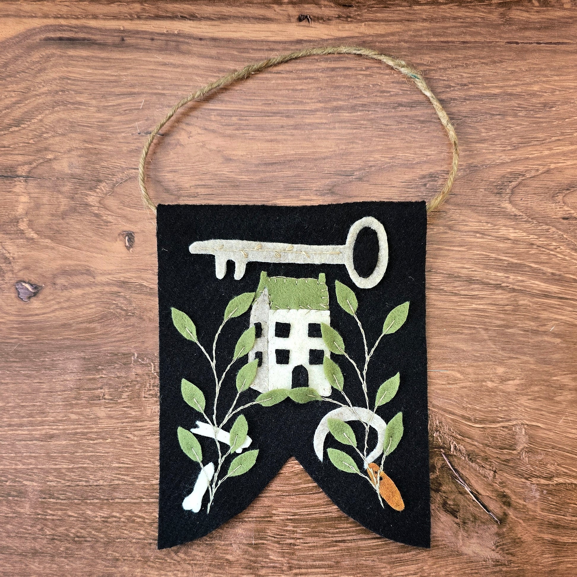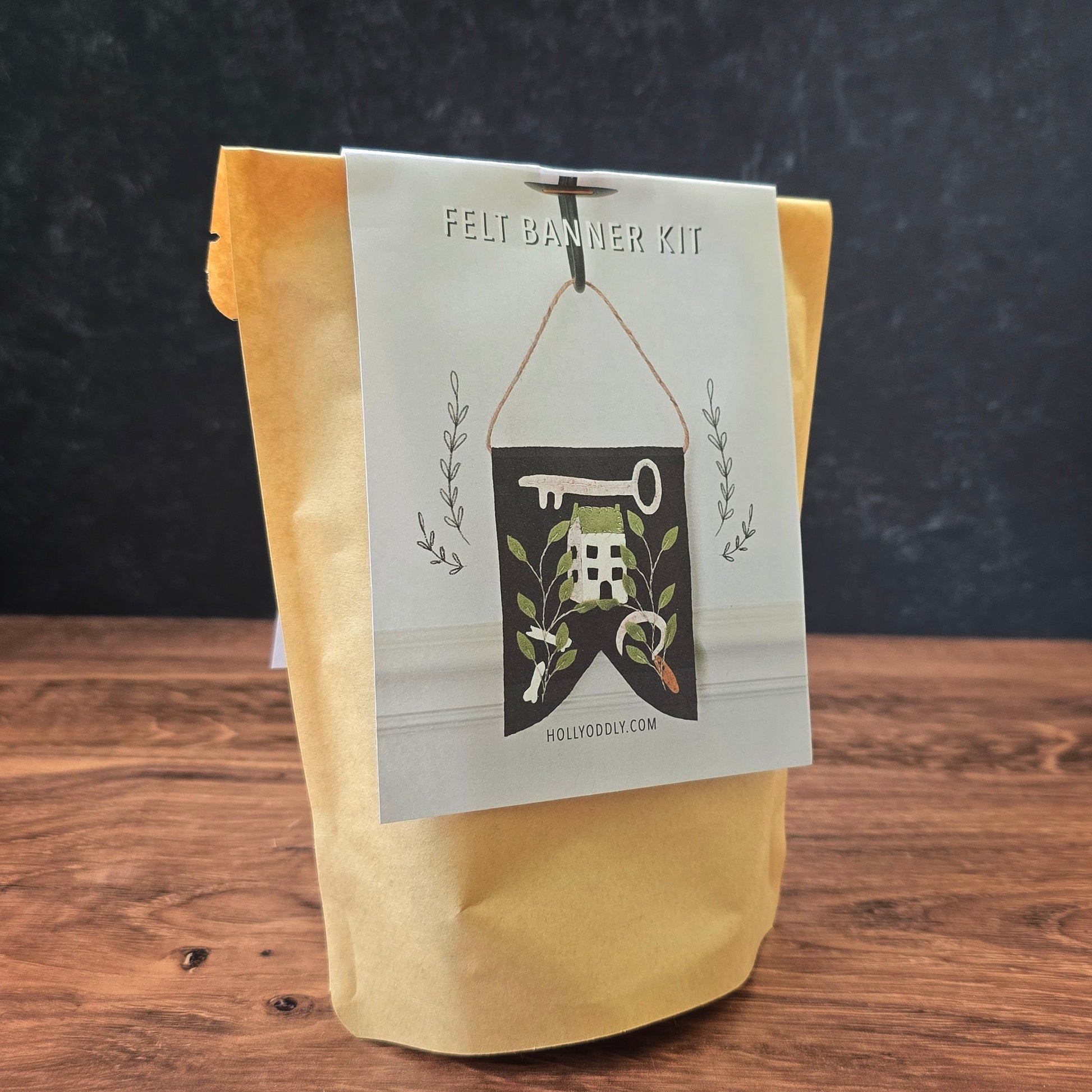 Comes with: template, banner, felt, embroidery floss, needle, pins, jute rope, and a video tutorial