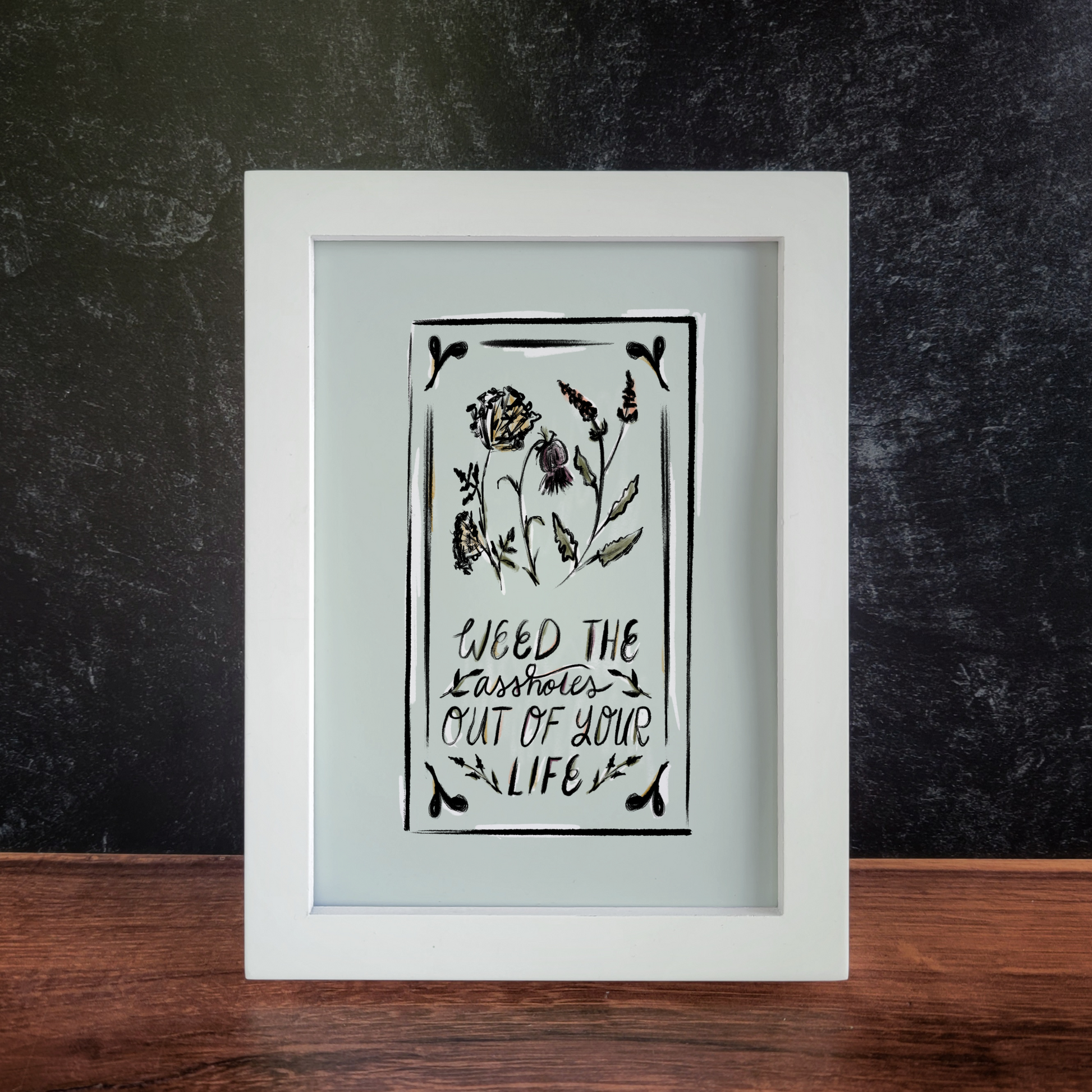 This 5x7 art print serves as a humorous reminder to prioritize your mental well-being by removing toxic individuals from your life. This print is the perfect addition to any space seeking positivity and self-care.