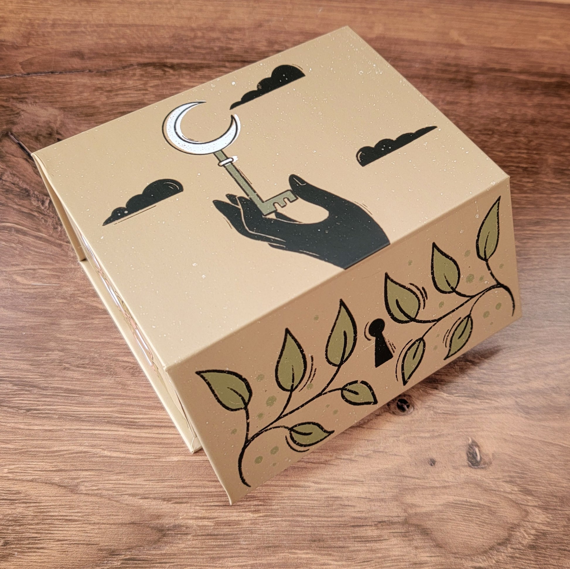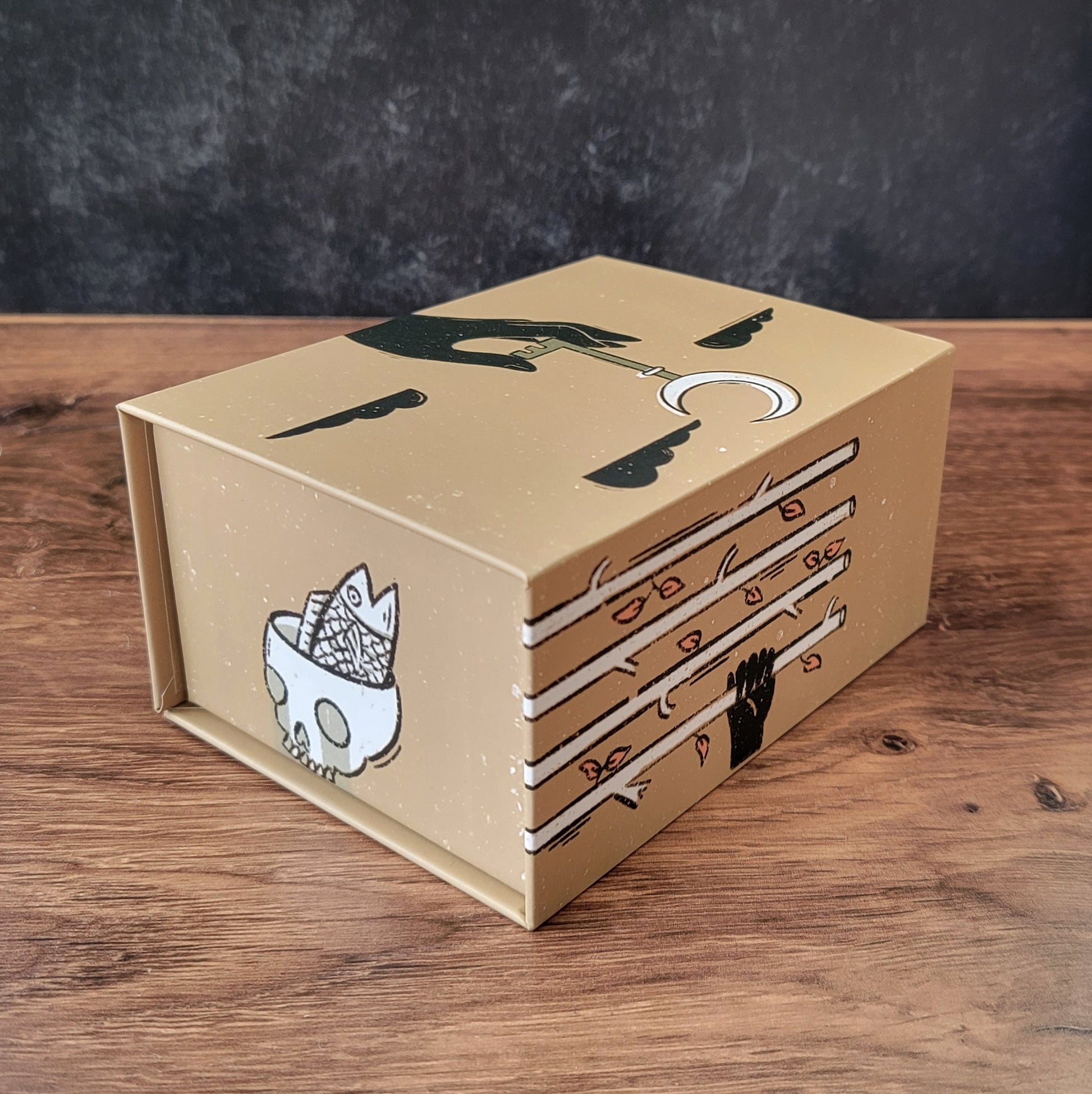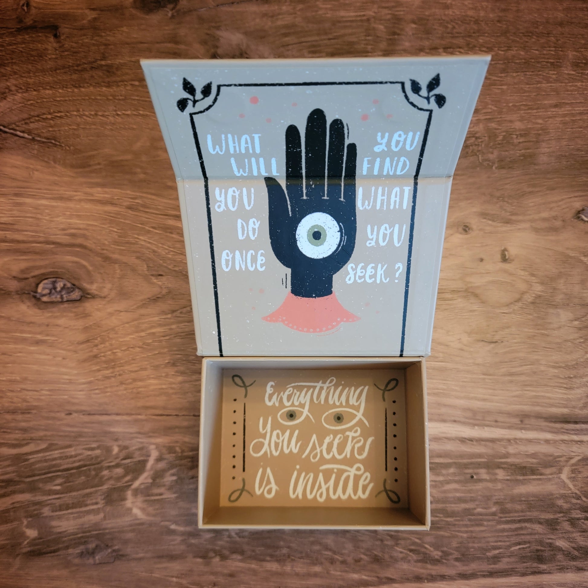 This listing is for the Teeny Tiny Tarot, six Mini Divi Decks (Witching, Omens, Ghosts, Curiosities, Ends, and Lore), and the magnetic box.